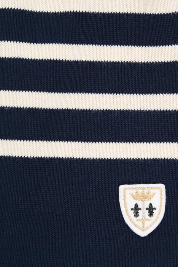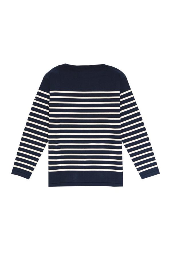 Breton striped shirt Lamaneur for men, long sleeves, boatneck, regular fit, side slits, badge “Jeanne d’Arc” at the bottom of garment.