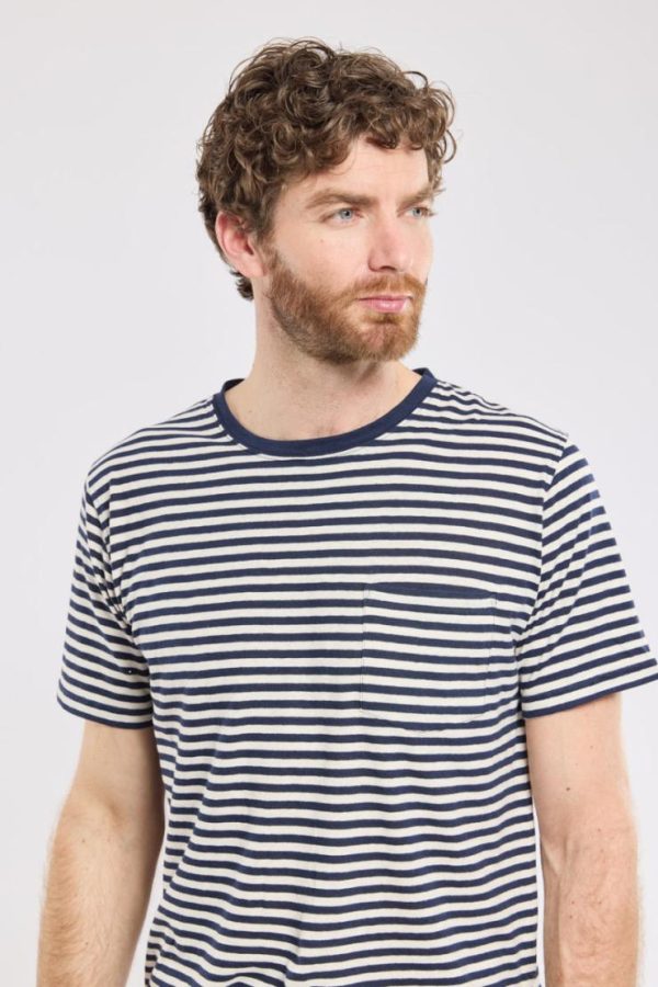 T-Shirts | Men Armor Lux Striped T-shirt – Cotton And Linen Marine Deep/nature